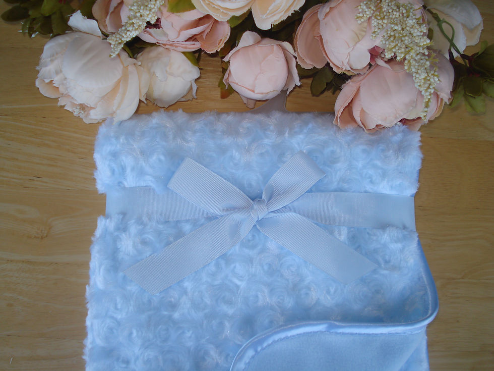 Blue Baby Girl Super Soft Deluxe Rosebud Blanket 100x75cm Fleece Lined